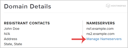 5. Scroll down to the bottom of the page and under Nameservers, click on the Manage Nameservers.