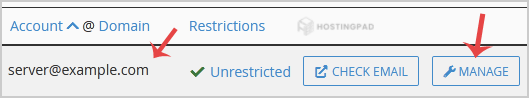 4. If your email address is server@example.com, you should see a Manage option on the right side of your email address. Click on Manage.