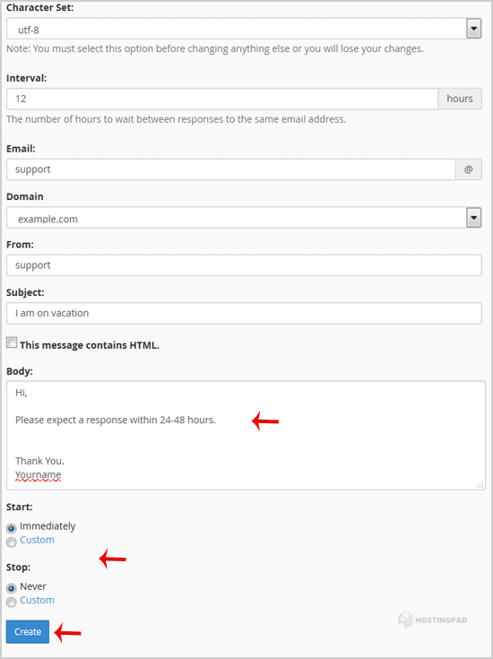 4. In the Interval field, specify the number of hours you wish the autoresponder to wait between responses to the same email address.