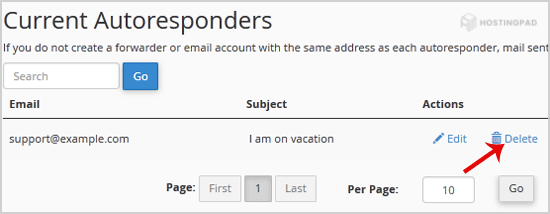 3. Next to autoresponder, click on Delete Autoresponder.