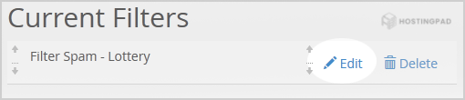 3. Under Current Filters, You can see all of your existing filters, Click on Edit next to the appropriate one.