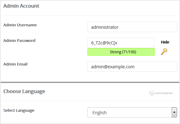 - Admin Username: Your new b2evolution username (for security reason do not use the Administrator or the Admin username.)