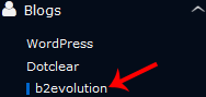 4. On the left side of your screen, you should locate the Blogs category. Click on it and then click on the b2evolution link that will appear.