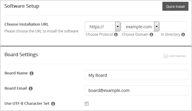 - Choose Installation URL: Choose the appropriate protocol/domain. Inside the "In Directory" field, should you want to install this in a directory, i.e., example.com/directory, enter the directory name. Otherwise, leave it blank to install in your main domain, i.e., example.com