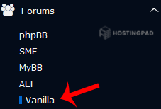 5. On the left side of your screen, you should locate the Forums category. Click on it and then click on the Vanilla link that will appear.