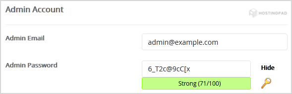 - Admin Username: Your new Fork username (for security reason do not use the Administrator or the Admin username.)