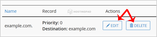 5. Locate CNAME Record you wish to edit or remove. Should you wish to edit a CNAME record, click the Edit option, modify the details, and click on Save Record. Removing a record can be done with the Delete option.