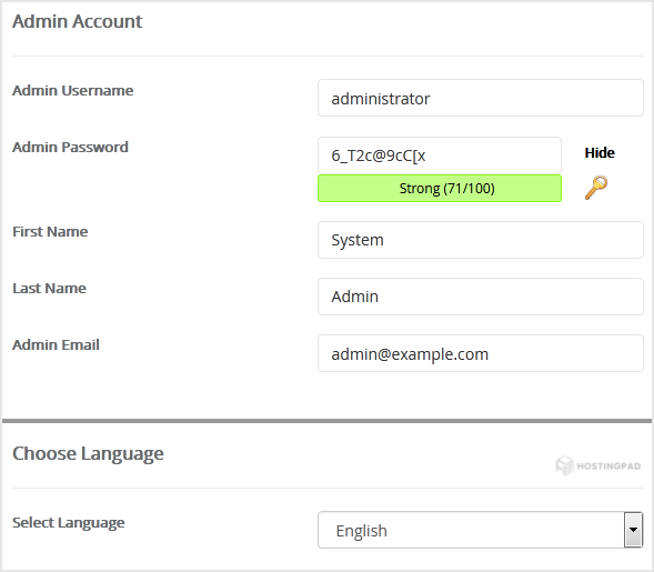 • Admin Username: Your new OctoberCMS username (for security reason do not use the Administrator or the Admin username.)