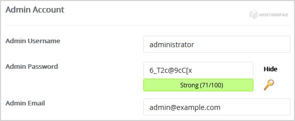 - Admin Username: Your new Typesetter username (for security reason do not use the Administrator or the Admin username.)